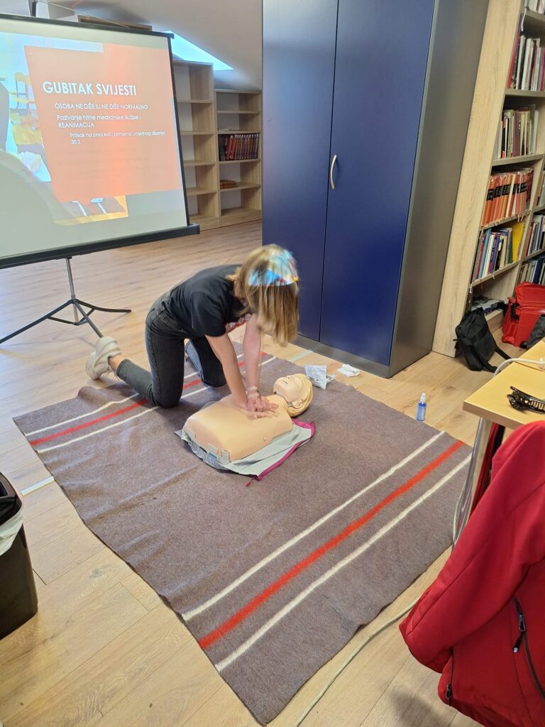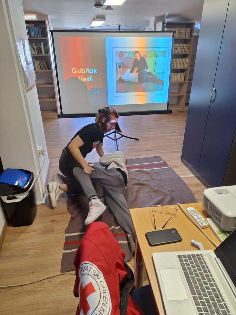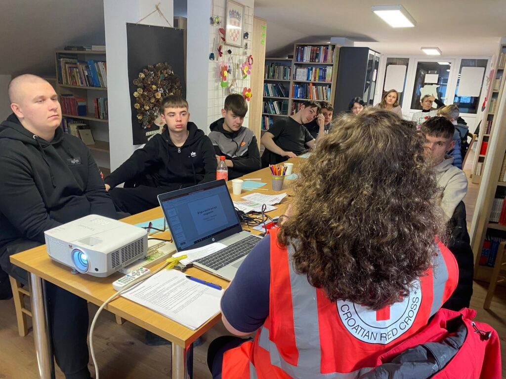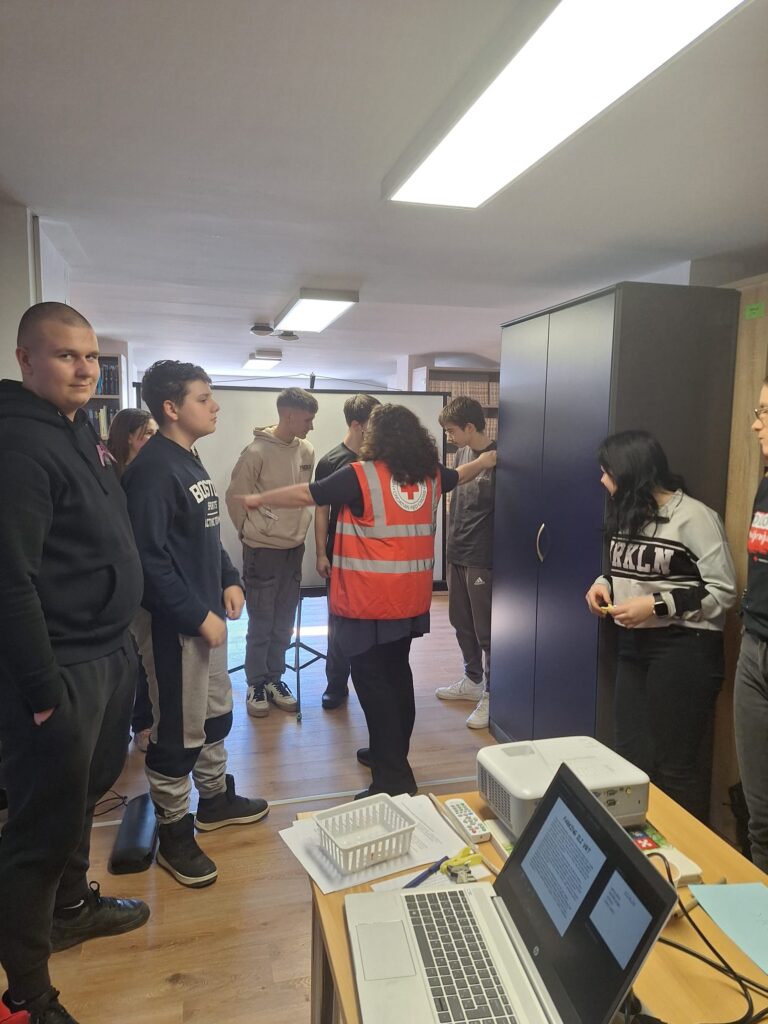 Najprije smo se upoznavali kroz interaktivne aktivnosti i pričali o pokretu i radu Crvenog križa. Zatim je naš volonter Dominik predstavio aktivnosti Terenskih jedinica mladih i kako to izgleda u GDCK Grubišno Polje. Zatim smo s našom volonterkom Jovanom imali radionicu Prve pomoći, gdje su učenici dobili nova znanja vezana uz pružanje Prve pomoći. Kako bi sve bilo što realističnije, naša volonterka Martina izradila je različite ozljede koje su učenici zajedno s Jovanom sanirali.