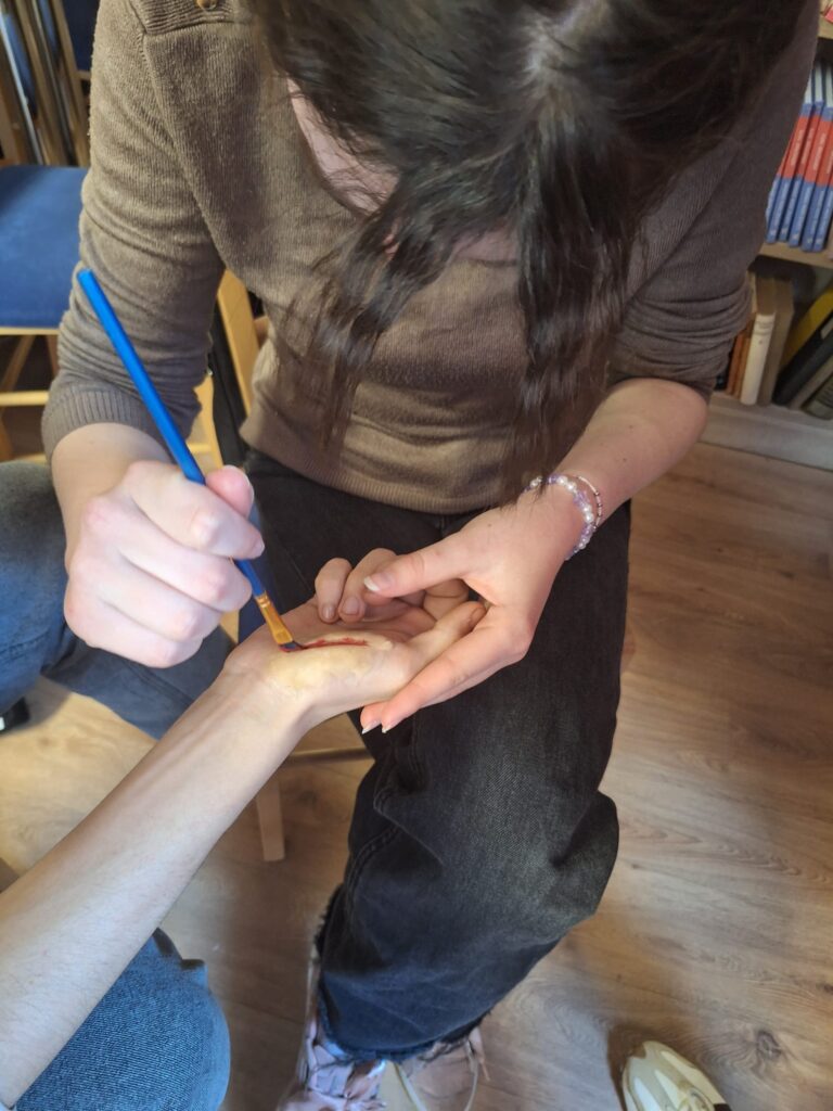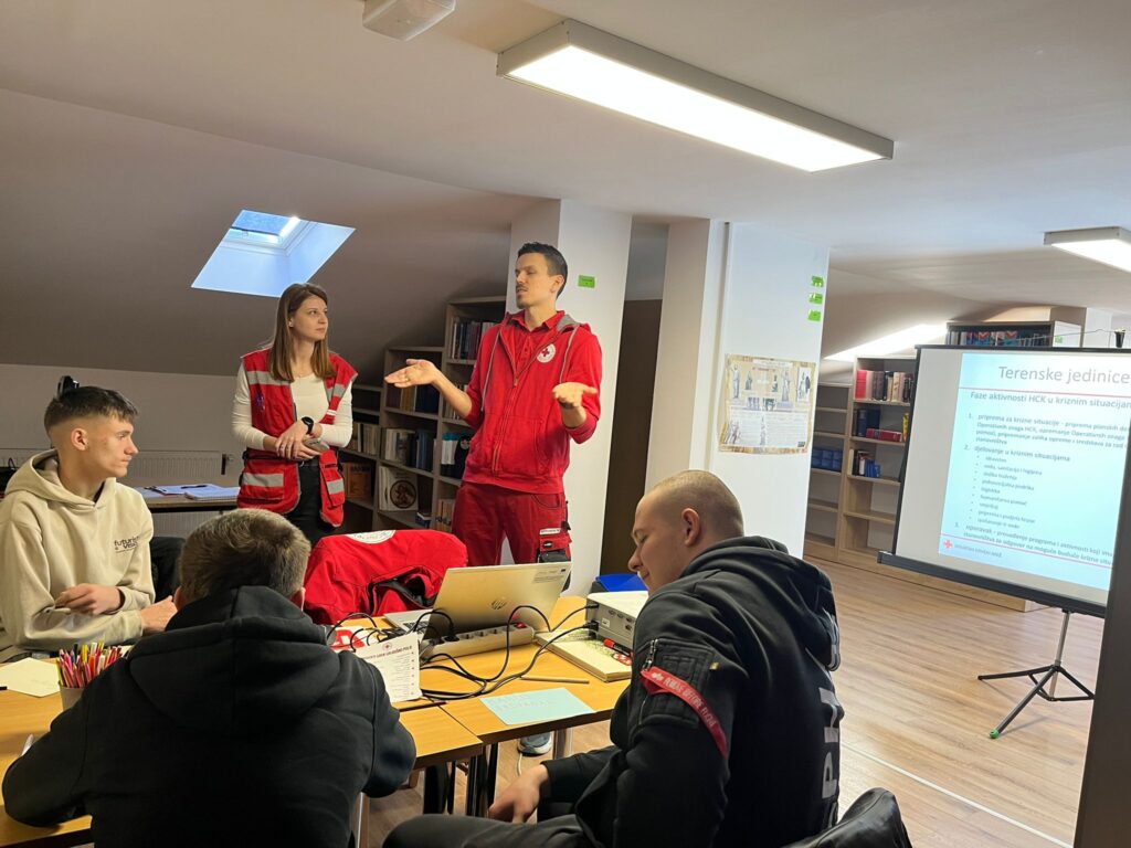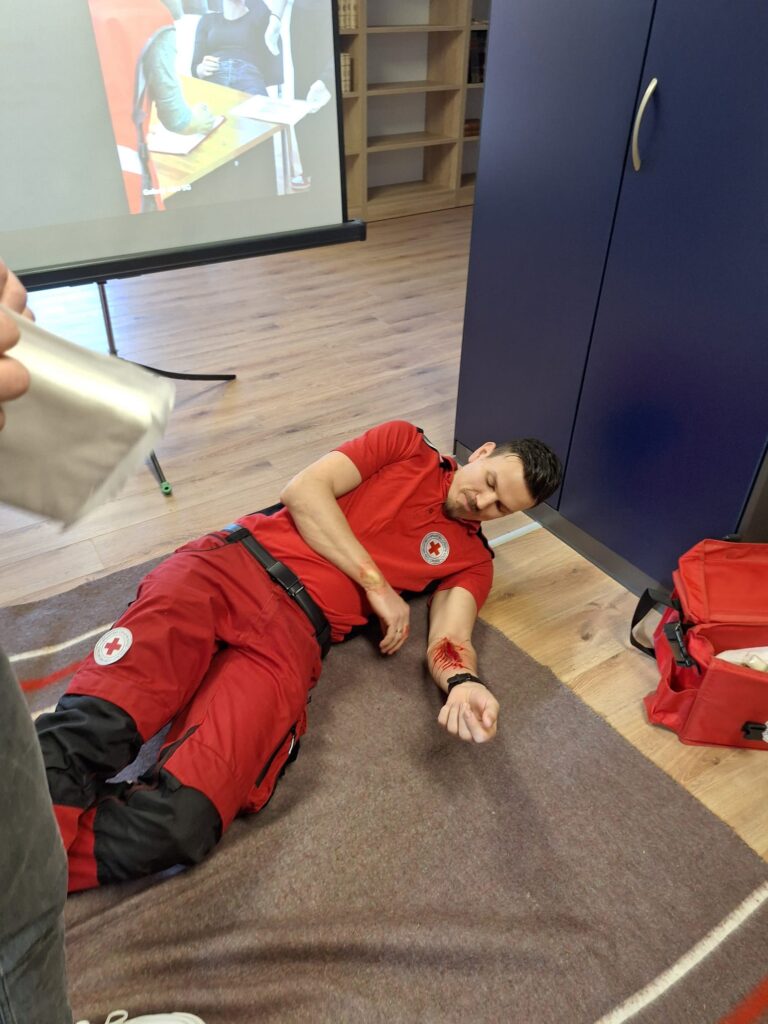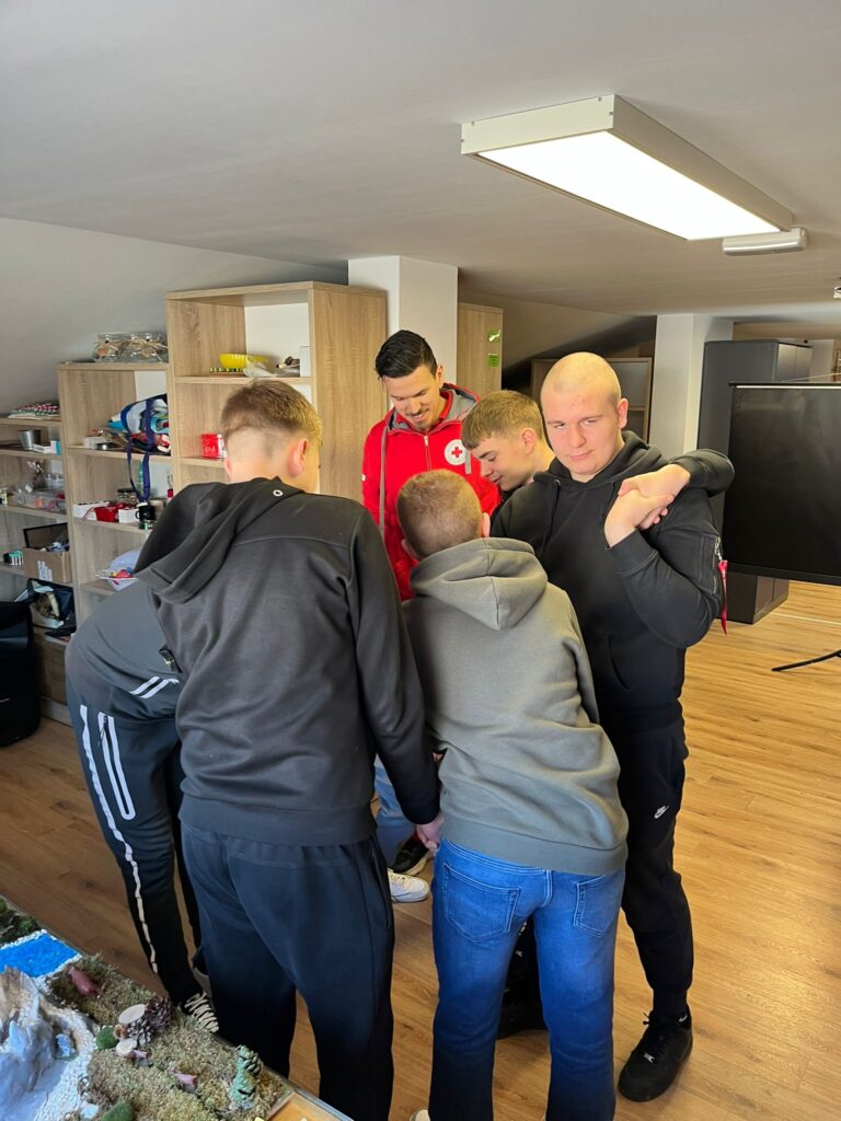 Najprije smo se upoznavali kroz interaktivne aktivnosti i pričali o pokretu i radu Crvenog križa. Zatim je naš volonter Dominik predstavio aktivnosti Terenskih jedinica mladih i kako to izgleda u GDCK Grubišno Polje. Zatim smo s našom volonterkom Jovanom imali radionicu Prve pomoći, gdje su učenici dobili nova znanja vezana uz pružanje Prve pomoći. Kako bi sve bilo što realističnije, naša volonterka Martina izradila je različite ozljede koje su učenici zajedno s Jovanom sanirali.
