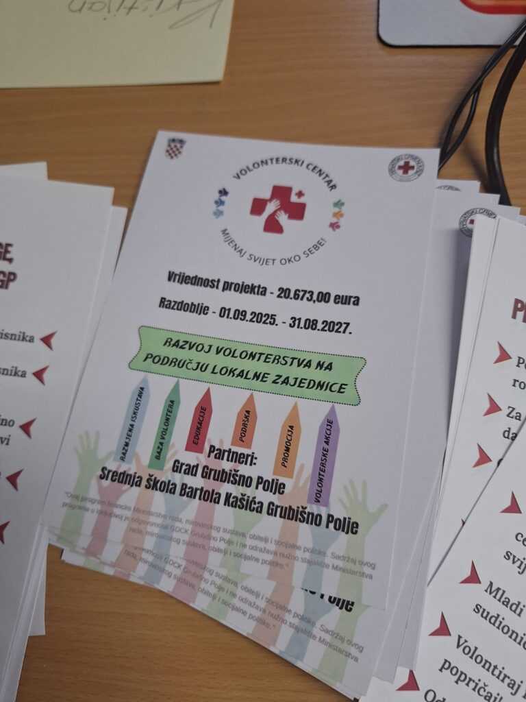 U petak. 27.02.2026. Gradsko društvo Crvenog križa Grubišno Polje sudjelovalo je na Projektnom danu u Srednja škola Bartola Kašića Grubišno Polje. Kroz cijeli nastavni dan družili smo se s prvim razredom učenika kojima smo predstavili Crveni križ i pokret te što sve radi i provodi GDCK Grubišno Polje.