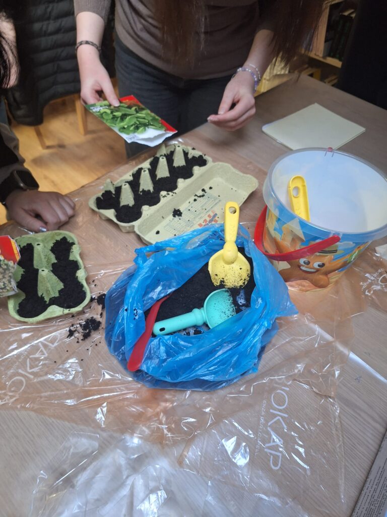 Na kraju je naša djelatnica Iva održala radionicu na temu ekologije i psihologije “Briga o okolišu počinje razgovorom” gdje su učenici kroz razgovor i simulacije mogli vidjeti kako briga o okolišu je zajednička te da suradnjom i povezivanjem, razgovorom bez osuda i promišljanjem o tuđim potrebama možemo smanjiti negativan utjecaj na okoliš. Na kraju smo svi zajedno posadili začinsko bilje, koje simbolizira brigu o okolišu i nenasilnoj komunikaciji.